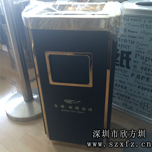 山東龍湖房地產鈦金垃圾桶也叫金霸王大理石座地煙灰桶,其規格為:360*280*685mm,鈦金垃圾桶是采用不銹鋼經鍍鈦處理,專業除銹,表面采用專用戶外高溫烤漆,保證色彩鮮艷持久,最大程度的延長了產品生銹時間。桶身外飾大理石,鍍鋅板內膽,直接擺放在地面,非常方便。產品表面呈金黃色,光滑亮麗,彰顯高貴本色,因此,鈦金垃圾桶是不少房地產、星級酒店、賓館、娛樂城、銀行、商務寫字樓等單位的首選。