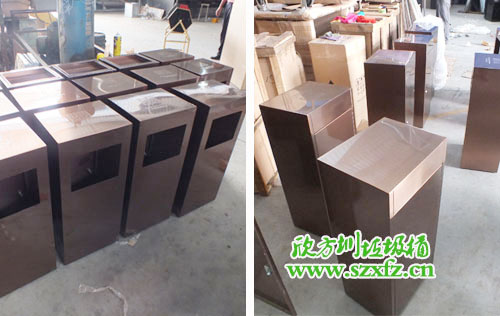 作為一家酒店,采購(gòu)不銹鋼垃圾桶要求極高。垃圾桶的選擇不容馬虎,兩者搭配得融入酒店的文化氣息。我們欣方圳公司業(yè)務(wù)部人員,根據(jù)酒店的特色給他推薦了一款C60方形不銹鋼果皮箱。洽談中對(duì)方對(duì)我們此款垃圾桶很是滿意,只不過顏色需要改善。我們?cè)O(shè)計(jì)師在對(duì)方的提議中,為他把顏色改為了土豪金色,高端大氣,上層次。本款采購(gòu)的不銹鋼果皮箱規(guī)格為:350*350*680mm,方形設(shè)計(jì),采用304#優(yōu)質(zhì)砂光不銹鋼材料模壓成型,金屬亮澤,高雅美觀跟酒店搭配在一起,可謂是天作地和一對(duì)。