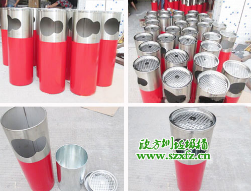 該款不銹鋼垃圾桶的規(guī)格為:250*700mm,垃圾桶是嚴格按照樣板的質量和顏色來生產的。不銹鋼垃圾桶是可以拆開,上桶與下桶現(xiàn)結合。整桶圓形狀,上桶頂部有投放煙頭,滅火隔離。不銹鋼上桶表面是不銹鋼砂鋼色,有兩個圓形組合的投放物口。不銹鋼垃圾桶下桶在原有的色彩上面,采用了噴塑工藝,用中國傳統(tǒng)顏色大紅色來襯托。整款不銹鋼垃圾桶設計簡單,外觀美觀,簡約大方不失本色。