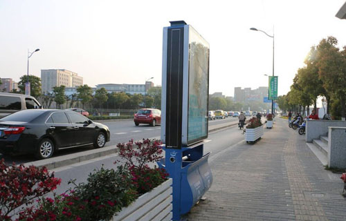記者看到,這些亮相瀘縣街頭的“高科技”垃圾桶與普通的垃圾桶差別很大,看起來更像是一塊路牌。這些“高科技”下面是普通垃圾桶,分為可回收垃圾和不可回收垃圾兩部分,而上半部分則像是路牌,一側(cè)設(shè)有兩個(gè)USB充電接口,垃圾桶的最頂上則是一塊太陽能充電板。“我第一次看到的時(shí)候,還以為是個(gè)報(bào)刊欄。”