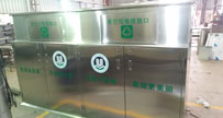 社區戶外大型不銹鋼垃圾箱經剪板折彎焊接打磨拋光制作而成,制作精良無利口不傷手,金屬亮澤高雅美觀。產品表面光滑,亮麗,內外表面光潔,減少垃圾殘留,易于清潔。欣...