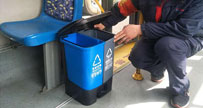 分類垃圾桶上了公交車青島開始試點