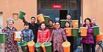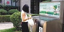“每戶分給一個橙色桶和一個綠色桶。綠色桶用來盛廚余垃圾,橙色桶用來盛其他生活垃圾,每種顏色的桶配一卷同顏色的垃圾袋。另外還有一本垃圾桶分類指導手冊...