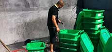 前天上午8點(diǎn),金棉小區(qū)廢棄籃球場的東南角就響起了一陣陣沖洗聲,清潔人員劉師傅拿著水管沖洗著一只只垃圾桶,邊上一排晾著幾十只剛洗干凈的垃圾桶。這些垃圾桶都...