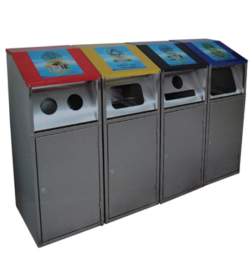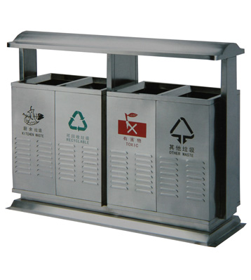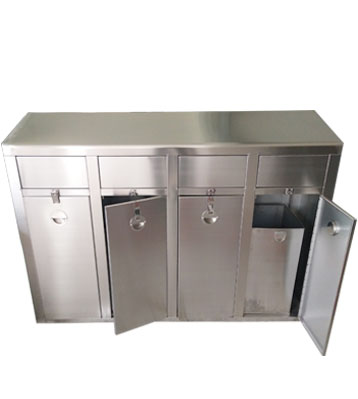 小區垃圾分類站點四類垃圾分類垃圾桶,不銹鋼無疑是較為理想的材質。它戶外防銹蝕效果好,表面金屬光澤高檔美觀,污漬也易清理。不銹鋼分類桶產品款式造型易定制,不受尺寸大小限制,滿足個性化需求,擺放于惠