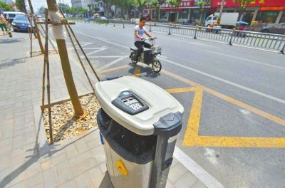近日,街道馬路上出現(xiàn)新型垃圾桶,在頂蓋煙灰缸旁還有溫度表。看到了這款“高大上”的垃圾桶。它除了頂部安裝帶指針的溫度表外,其他地方與普通垃圾箱無異。