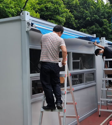 欣方圳為深圳龍華社區(qū)生產(chǎn)的簡易核酸亭,集裝箱式可吊裝移動方艙快速拼裝核酸采樣板房,使用方便,制作快捷,配備風扇,空調(diào),雨棚和擋雨板,照明,隔熱,防潮,等功能。提升醫(yī)護人員核酸采樣環(huán)境舒適性,防疫