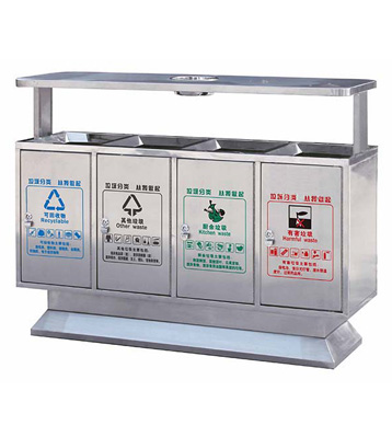 深圳新標準城中村街道社區不銹鋼五分類垃圾桶由有害垃圾、玻璃、金塑紙(為金屬、塑料、紙張的簡稱)、廚余垃圾、其他垃圾這5分類不銹鋼垃圾桶組合而成。其中金塑紙、其他垃圾日常產生量較大,所以分類收集容器也