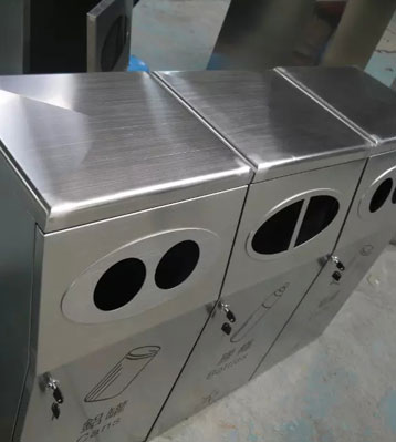 欣方圳不銹鋼三分類環保回收桶工廠生產圖