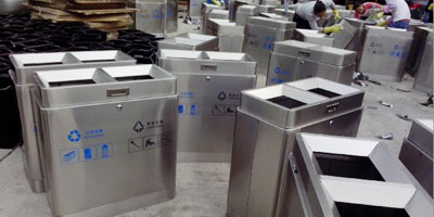 欣方圳分類不銹鋼垃圾桶采用201優質不銹鋼材質制作,專業焊接打磨成型,產品表面圓滑光澤。