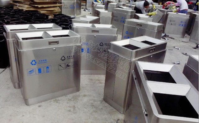 分類不銹鋼垃圾桶工廠批量生產圖