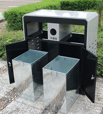 戶外鋼板烤漆環保垃圾桶批量生產圖