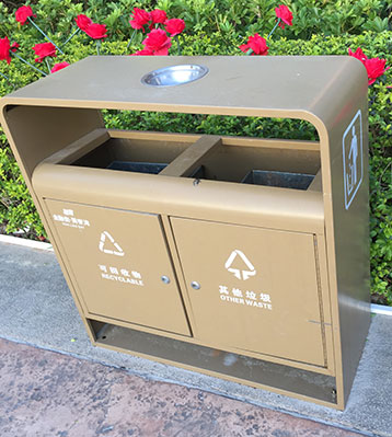 • 使用范圍:戶外鋼制分類垃圾桶表面光滑、亮麗,是電梯口、寫字樓、學校、物業、賓館、酒店、機場、汽車站等擺放的首選。