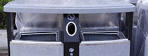 欣方圳仿大理石玻璃鋼垃圾桶雙投口垃圾分類,中間立柱煙灰缸,分離煙頭和垃圾。