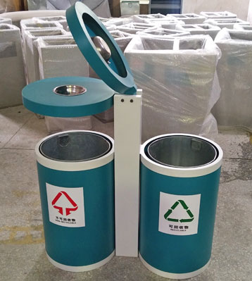 戶外鋼制烤漆分類垃圾桶批量生產(chǎn)圖