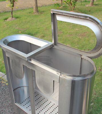 • 產品材質:地鐵不銹鋼分類果皮箱采用201#,202#,304#優質不銹鋼材料模壓成型,堅固耐用,不易破損;耐火安全,抗高低溫,適合各種惡劣氣候條件;金屬亮澤,高雅美觀,廣泛適用于各種場所;內外表面光潔,減少垃圾殘留,易于清潔;配置鍍鋅板內桶,便于垃圾清倒;