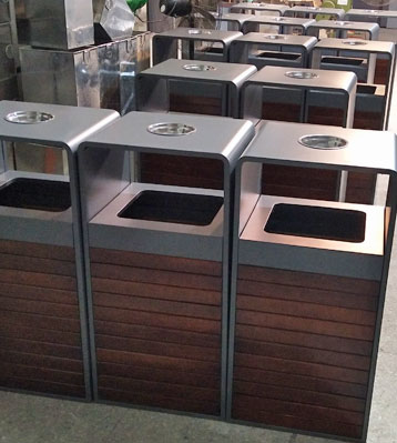 戶外鋼木分類果皮箱成福州園林景觀環境一部分