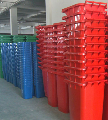 120/240升塑料垃圾桶批量出貨及工廠生產圖