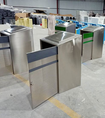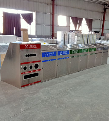 • 產品材質:不銹鋼沖孔社區垃圾分類收集站采用201#,202#,304#優質不銹鋼材料模壓成型,堅固耐用,不易破損;耐火安全,抗高低溫,適合各種惡劣氣候條件;金屬亮澤 ,高雅美觀,廣泛適用于各種場所;內外表面光潔,減少垃圾殘留,易于清潔;配置鍍鋅板內桶,便于垃圾清倒;