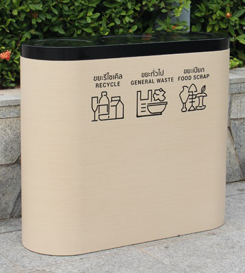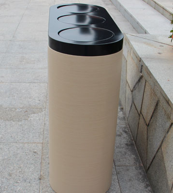 這是欣方圳出口國外商場的一款搖蓋金屬室內三分類垃圾桶,采用優質冷軋鋼材料經剪鈑下料、折彎、沖壓、焊接、打磨等鈑金工藝制作而成。搖蓋投口...