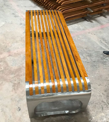 欣方圳不銹鋼室外休閑椅凳面防腐木材質制作流程示意圖,工藝領先,品質卓越,真正經久耐用。