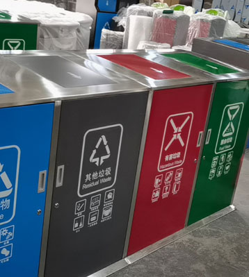 欣方圳社區戶外大容量四分類垃圾桶工廠批量生產圖