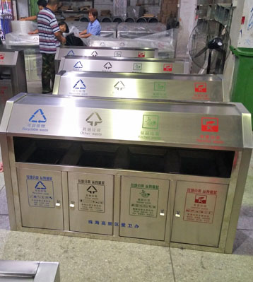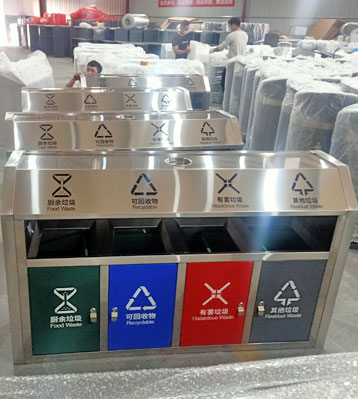 欣方圳斜切面不銹鋼四分類垃圾桶絲印新標準分類圖標