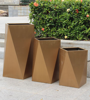 • 產品材質:不銹鋼電鍍切面組合景觀花盆可采用5mm加厚201#/202#/304#不銹鋼材料模壓或焊接成型,金屬亮澤,內外表面光潔,易于清潔,表面可做電鍍壓紋、水鍍、蝕刻、納米鎳、無氰堿性光亮鍍銅工藝效果,無指紋處理高檔大氣;
