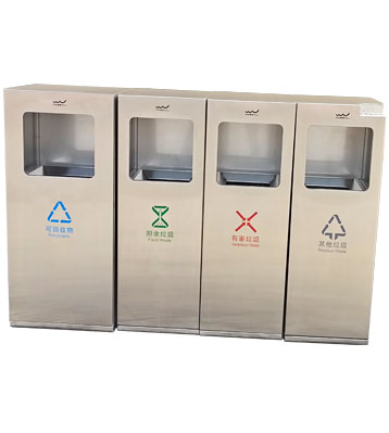 欣方圳不銹鋼滑軌推拉抽屜式分類垃圾箱戶外擺放圖