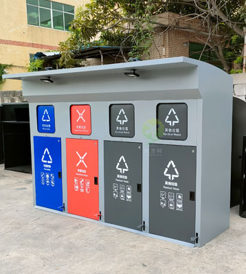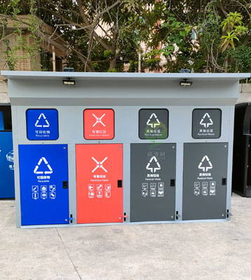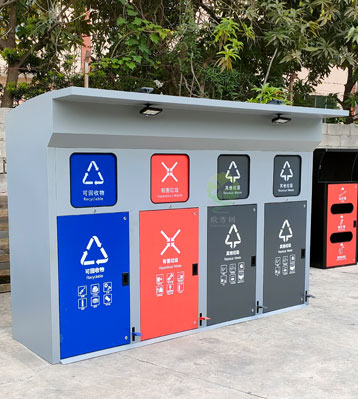 • 使用范圍:小區生活垃圾分類投放屋應用于花園小區垃圾分類、物業社區、居民樓院、社區街道、單位庭院等場所分類垃圾收集。