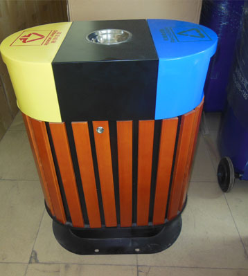 環保鋼木分類垃圾桶工廠批量生產圖: