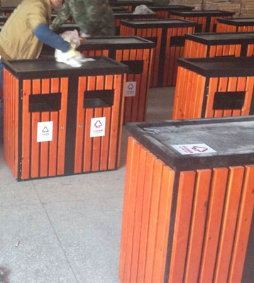 環(huán)保鋼木分類垃圾桶產(chǎn)品工廠加班生產(chǎn)圖