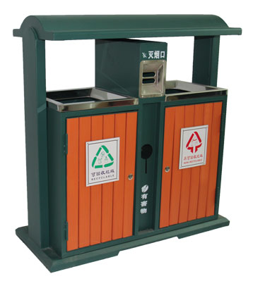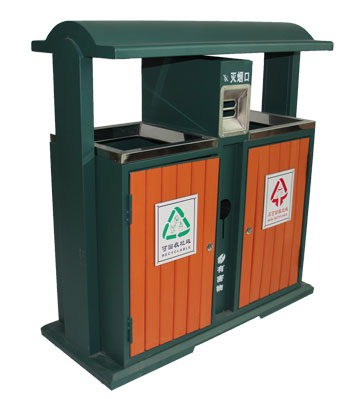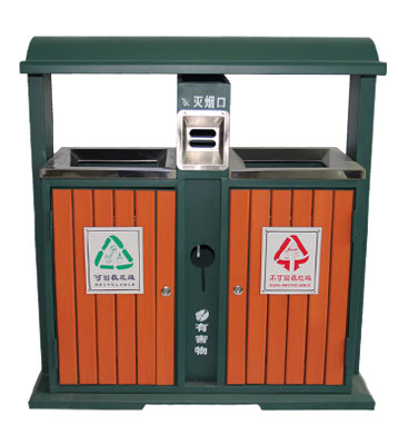 景區鋼木環保分類垃圾箱桶頭細節圖