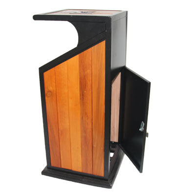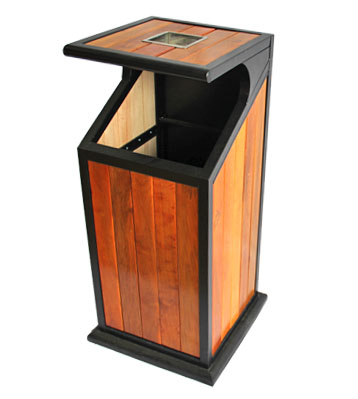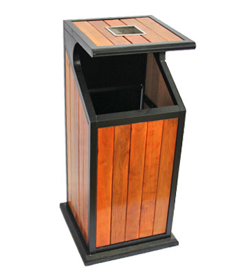 公園鋼木單桶垃圾桶桶頂細(xì)節(jié)圖