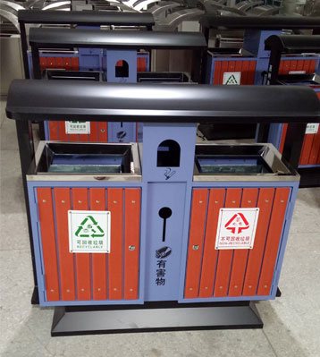 欣方圳戶外鋼木分類垃圾桶批量生產(chǎn)圖