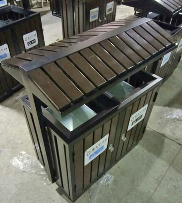 屋形鋼木分類(lèi)垃圾桶桶頭細(xì)節(jié)圖