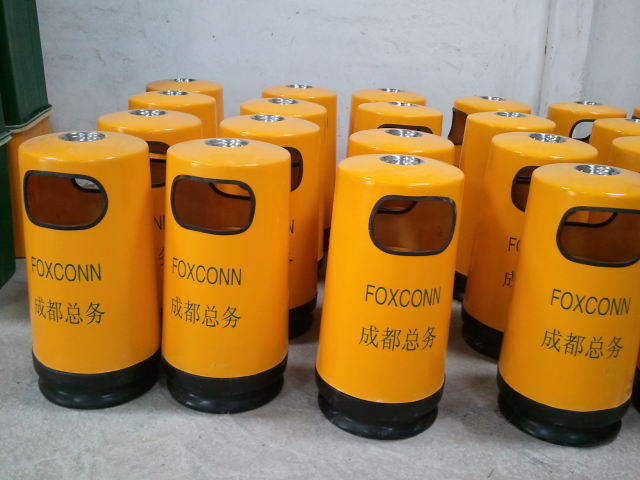 四川成都市政單位領導經過來我司欣方圳公司考察,經定制樣品很滿意,定制了好幾百個玻璃鋼垃圾桶 ,街道多了一道亮麗的風景,上面投遞煙灰頭,下面是...