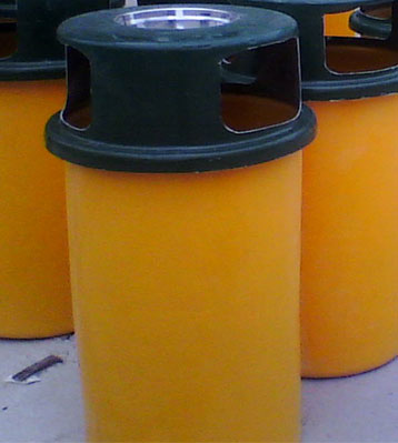 玻璃鋼垃圾桶桶身和內膽部分,采用高級玻璃鋼材質一次成型,經過打磨、除塵 、噴漆等一系列后期工藝然后出成品。
